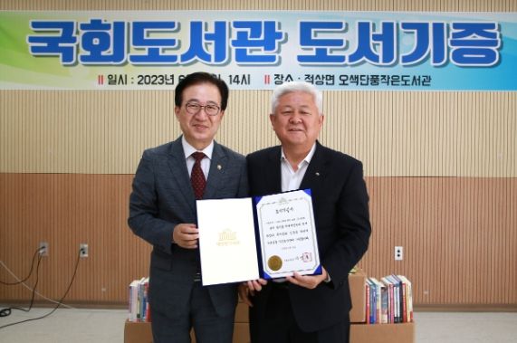 국회도서관은 무주군 오색단풍작은도서관에 청소년 도서 등 4백 권을 지원했다. 15일 열린 기증식에는 황인홍 무주군수와 이명우 국회도서관장을 비롯한 이해양 무주군의회 의장과 윤정훈 전라북도 도의원, 그리고 적상면 주민 등 20여 명이 참석해 의미를 더했다.