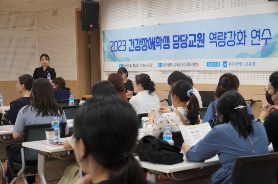 [제주교통복지신문 김강석 기자] 광주시교육청이 15일 광주특수교육지원센터 연수실에서 관내 초·중·고등학교 교사 30여 명이 참석한 가운데 ‘2023학년도 건강장애학생 담당교원 역량 강화 연수’를 개최했다.