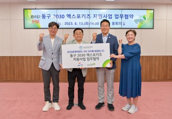 [제주교통복지신문 김강석 기자] 부산 동구청, 초록우산 어린이재단 부산지역본부, 초록우산 어린이재단 부산종합사회복지관은 지난 13일 2030부산세계박람회 유치를 응원하며, 동구 2030 엑스포키즈 지원사업 업무 협약을 체결했다. 이날 협약을 위해 초록우산 어린이재단 이홍렬(개그맨) 홍보대사도 함께 참석했다.