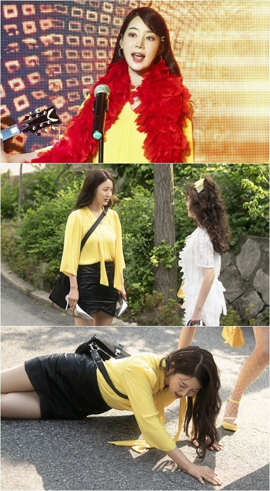 공개된 스틸 속 한지혜는 기존의 단아한 이미지를 벗어 던진 채, 오색찬란한 의상을 차려 입은 아마추어 행사가수로 변신한 모습. 짙은 스모키 메이크업이 보는 이들의 입을 자동으로 떡 벌어지게 만든다. 뿐만 아니라 병아리 같은 샛노란 블라우스와 검은 가죽 미니스커트까지 한지혜라고는 생각할 수 없는 무지개 색 무대의상이 시선을 강탈한다. 그런가 하면 한지혜는 킬힐을 신고 가파른 비탈길을 급하게 뛰었는지 시멘트 길에 그대로 고꾸라진 모습. 안타까울 지경으로 처참히 망가져 보는 이들까지 얼굴을 붉게 물들게 한다.