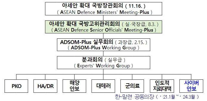 아울러, 김선호 차관은 내년 한-아세안 대화관계 수립 35주년 계기에 양자관계를 최고 수준인 '포괄적 전략 동반자 관계'로 격상되는 것에 맞춰 한-아세안 국방협력도 더욱 강화해 나가겠다고 했다.