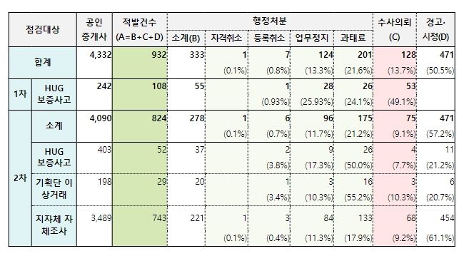 이번 점검에서는 지난 1․2차 특별점검으로 위법행위가 적발된 880명을 대상으로 위반사항에 대한 시정 여부, 업무정지 기간 중 중개행위 여부 등을 확인한다.