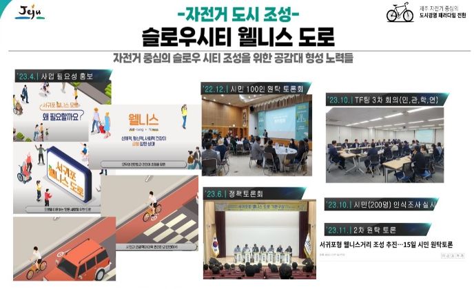 [제주교통복지신문 박상현 기자] 제주특별자치도는 도로 다이어트를 통해 자동차 도로를 줄여 자전거 전용도로를 설치하는 등 도로 환경을 새롭게 조성했다. 또한, “자전거 정책 전담팀”을 조직하여 정책 지속성과 전문성 확보에 힘썼다. 이를 통해 제주도는 자동차 중심의 도시에서 자전거와 보행자 중심의 도시로 변화하고 있다.