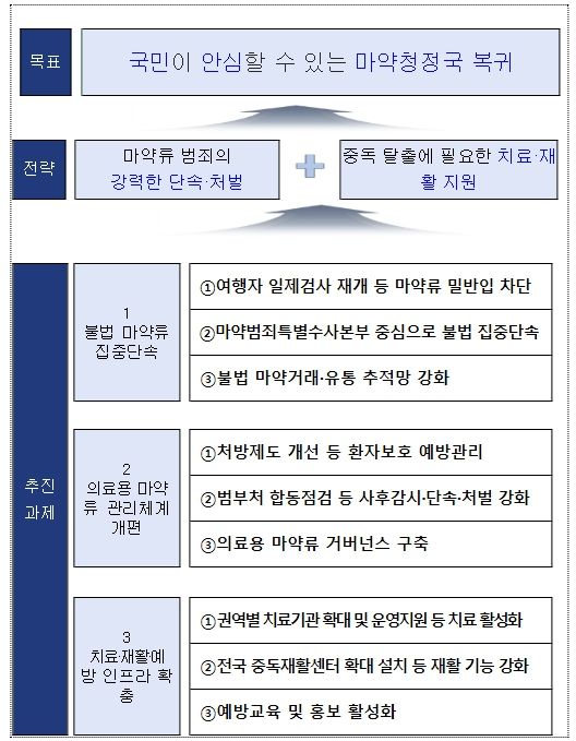 [제주교통복지신문 박상현 기자] 정부는 11월 22일 오후 2시 정부서울청사에서 제7차 마약류대책협의회를 개최하고, 회의 종료 직후 관계부처 합동브리핑(브리퍼: 방기선 국무조정실장)을 통해 '마약류 관리 종합대책」 을 발표했다.