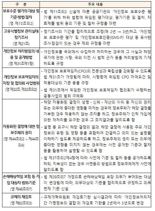 '개인정보 보호법' 시행령 개정안의 주요 내용은 다음과 같다.