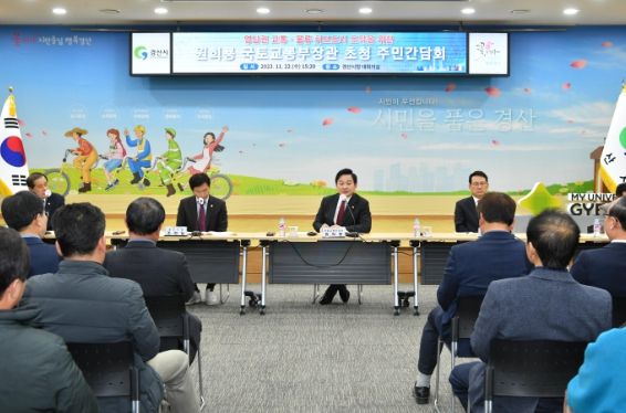 먼저, 원 장관은 경산시청에서 윤두현 의원, 조현일 경산시장, 지역주민들과 함께 현안사업 간담회를 가지고, 대임공공주택지구, 진량하이패스IC, 경산역 KTX 정차 등 다양한 건의를 받았다.