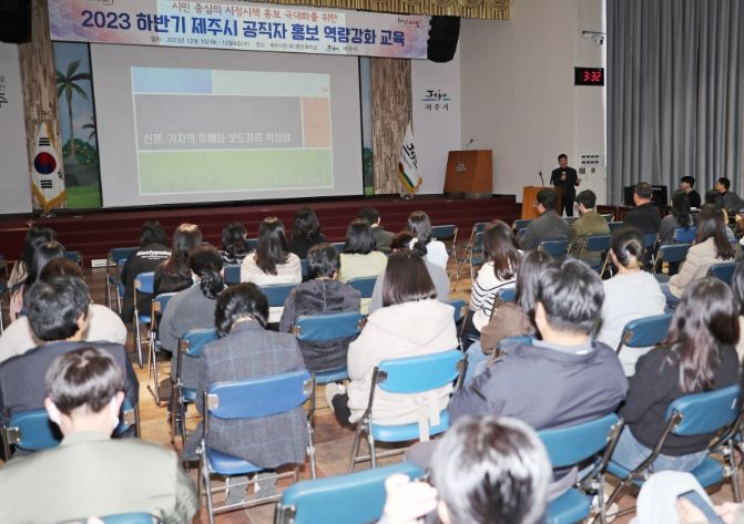 [제주교통복지신문 김현석 기자] 제주시는 12월 5일부터 이틀간 총 2회에 걸쳐 제1별관 회의실에서 ‘2023 하반기 공직자 홍보 역량강화 교육’을 실시했다.