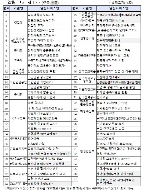 이번에 추가된 주요 알림 서비스를 살펴보면, ▴필수예방접종 안내, ▴건강진단결과서 만료일 안내, ▴소상공인 손실보상 통지 등이다.