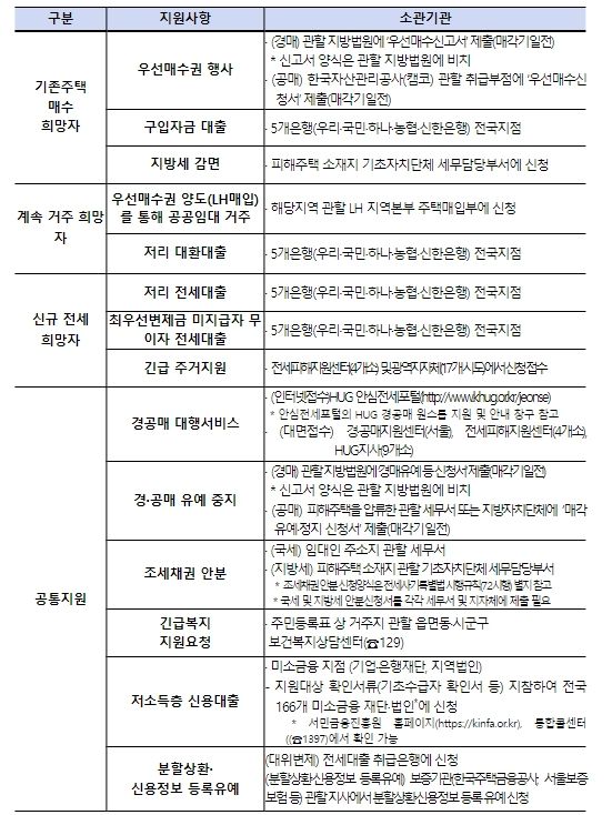 전세사기로 어려움을 겪고 있는 임차인은 거주지 관할 시・도에 피해자 결정 신청을 할 수 있고, 위원회 의결을 거쳐 피해자로 결정된 자는 주택도시보증공사(HUG) 전세피해지원센터(대면・유선) 및 지사(대면)를 통해 지원대책에 대한 자세한 안내를 받을 수 있다.