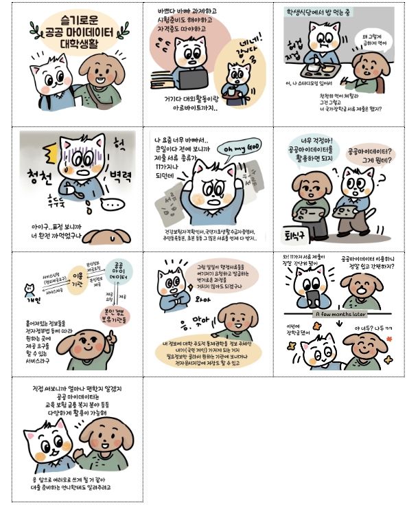 동영상 부문에서는'잘 부탁해! 공공 마이데이터'가, 카드뉴스 부문은'슬기로운 공공 마이데이터 대학생활'이 최우수상의 영예를 안았다.
