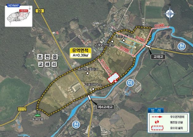 본 사업 지구인 조천읍 교래리 일원은 인근 천미천의 계획 홍수위보다 낮은 저지대로, 집중 호우나 태풍 내습 시 우수 유출 집중에 따른 하천수위가 상승해 침수피해가 잦은 지역이다.