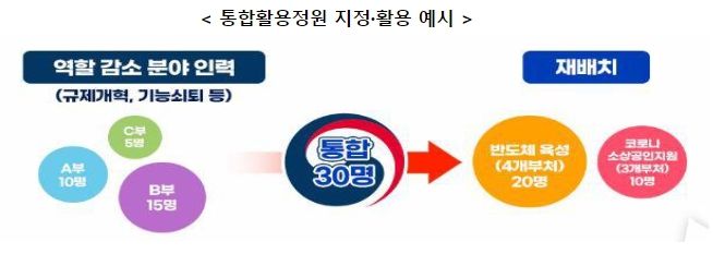 한편, 2022년에는 통합활용정원을 통해 일본방사능오염수 대응 등 국민보호 및 사회안전 분야에 274명, 탄소중립 등 미래대비 분야 61명 등이 재배치된 바 있다.