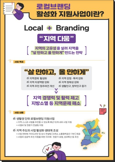 한편, 행정안전부는 앞으로 매년 10개소의 로컬브랜딩 사업지를 발굴하여 지역마다 차별화된 성장동력을 마련하고, 지역별 특화 발전 사례를 전국적으로 확산시켜나갈 계획이다. 선정된 1개소당 2년간 총 13억 원의 예산과 전문가 컨설팅 등이 지원된다.