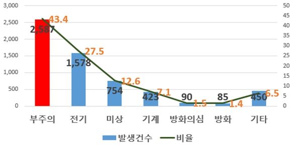 특히, 화재 발생 원인 중 부주의(43.4%)와 전기적 요인(27.5%)이 전체의 약 70%를 차지함에 따라 해당 위험요인에 대한 예방조치에 많은 관심을 가질 것을 당부했다.