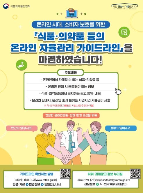 식약처는 앞으로도 민간이 앞장서고 정부가 밀어주는 민·관 협업을 바탕으로 식·의약 온라인 부당광고 등 불법행위에 대한 자율 점검을 확대하여 건전한 온라인 유통 문화를 정착시키고 소비자 피해를 예방하기 위해 최선을 다하겠다고 밝혔다.