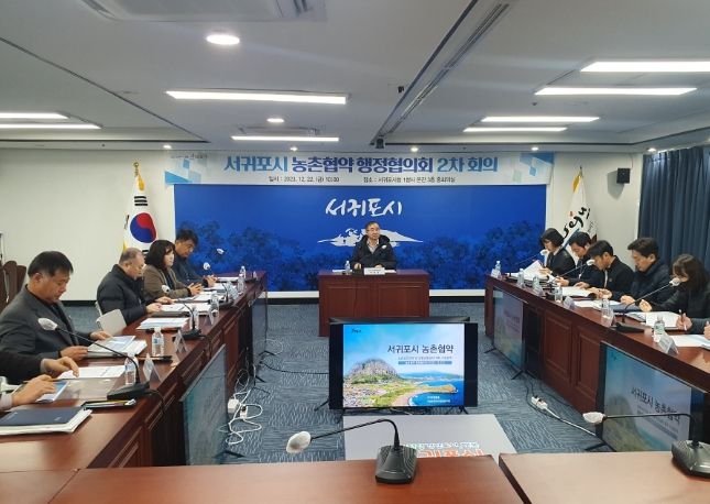 [제주교통복지신문 김현석 기자] 서귀포시는 22일 시청 본관 3층 중회의실에서 오임수 부시장, 농촌협약 관련부서 팀장, 부읍면장 등 20여명이 참석한 가운데 ‘서귀포시 농촌협약행정협의회 2차 회의’를 개최했다.