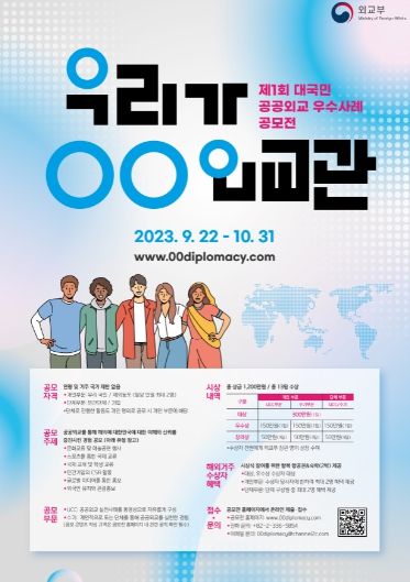 [제주교통복지신문 박상현 기자] 외교부는 우리의 정책, 지식, 문화 등을 통해 외국 국민의 이해와 신뢰를 증진시키는 공공외교 활동을 전개하고 있으며, 우리 국민들의 공공외교 활동 참여를 확대하기 위한 다양한 노력을 지속하고 있다. 이러한 노력의 일환으로, 올해 '제1회 대국민 공공외교 우수사례 공모전'을 개최했다.