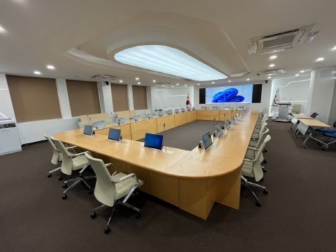 시스템은 터치 방식의 전동 리프트 모니터와 전자명패 등으로 구성됐다. 사용자가 모니터 화면에 직접 메모하거나 페이지를 넘길 수 있고 회의 참석자 간 페이지를 전달해 공유할 수 있으며 명패 또한 종이를 출력하지 않고 전자식으로 문구만 교체해 화면에 송출할 수 있다.