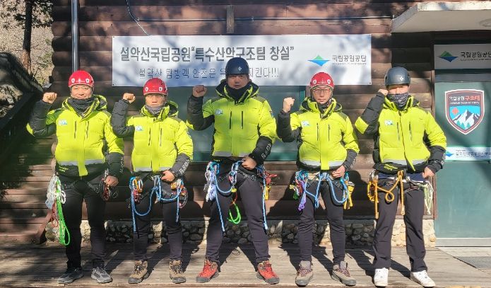 이번 설악산 특수산악구조팀은 인명구조 자격증, 암벽등반 기술 등을 보유한 8명의 전문구조대원으로 구성됐으며, 고지대 암벽 등에서 일어나는 산악사고를 24시간 상시 전담한다.