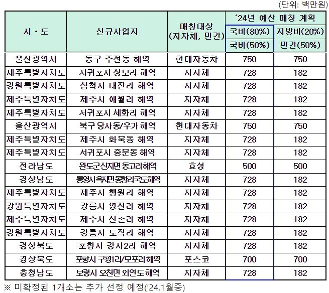 특히, 블루카본 증진 등에 적극 동참하고자 하는 현대자동차, 효성그룹, 포스코와 같이 2024년부터 2027년까지 총 73억 원(국가와 민간이 50:50)을 투입하여 울산·완도·포항 연안해역에 민‧관 협력 바다숲 4개소를 조성한다.