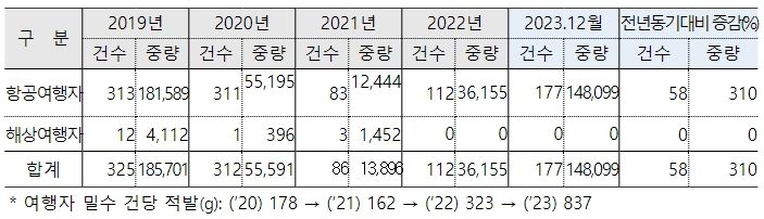 이는 최근 코로나 엔데믹에 따른 여행객 급증에 편승해 늘어난 신변은닉 방식의 여행자발 마약밀수에 적극 대응하기 위한 조치이다.