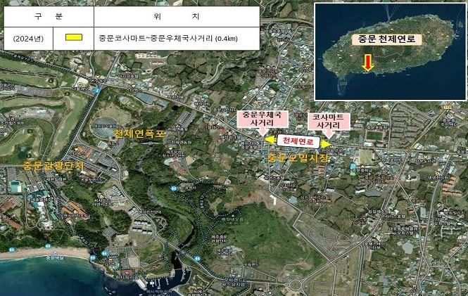 천제연로 간판개선사업’추진에 따라 사업비 6억원을(국비 50%) 투입하여 중문 중심 상권인 천제연로 일원(국민약국 사거리 ↔ 중문우체국, L=400m) 구간, 70개소 점포의 노후하고 무질서한 간판을 철거하고, 주변 환경과 어울리는 특색있는 간판을 설치해 깨끗하고 안전한 거리 조성할 계획이다.
