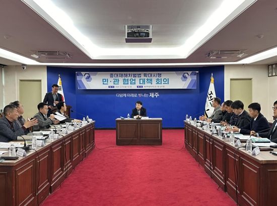 [제주교통복지신문 김현석 기자] 제주특별자치도는 중대재해처벌법 전면 시행(1월 27일)에 따라 민관이 협력해 중대재해 예방 소통망을 구축하고 현장 혼란 최소화하기 위한 방안을 마련하고자 5일 제주도청 삼다홀에서 도민안전건강실장 주재로 민관 협업 대책회의를 개최했다.