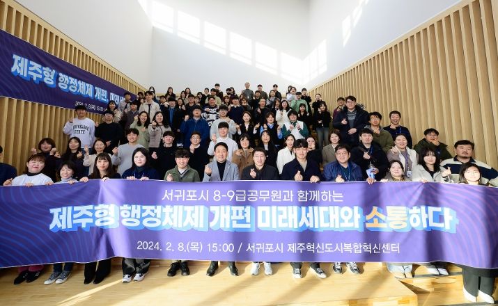 [제주교통복지신문 김현석 기자] 서귀포시는 8일 오후 서귀포시 제주혁신도시복합혁신센터 내 북카페에서 MZ세대 공무원 및 서귀포시 청년정책협의체 위원 등 100여명이 참석한 가운데 제주형 행정체제 개편 관련 소통의 시간을 가졌다.