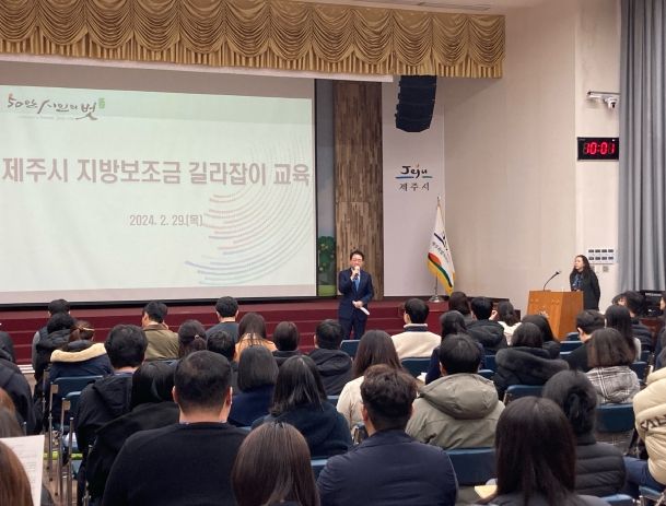 [제주교통복지신문 김현석 기자] 제주시는 2월 29일 시청 1별관 회의실에서 신규공무원 및 희망자 140여 명을 대상으로‘지방보조금 길라잡이 교육’을 실시했다.