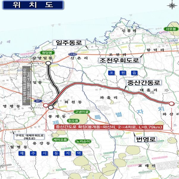 사전타당성 조사 시행구간은 구국도인 중산간도로(봉개동~와산리, 귀덕리~상가리) 2개 구간이며, 올해 1월 기획재정부 재정사업평가위원회에서 예비타당성 조사 대상사업으로 선정됐다.