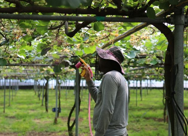 키위는 암꽃과 수꽃의 개화시기가 달라 인공수분이 필수적이기 때문에 농가에서는 전년도에 채취한 수꽃가루를 냉동보관하거나 수입산 수꽃가루를 구입해 사용한다.