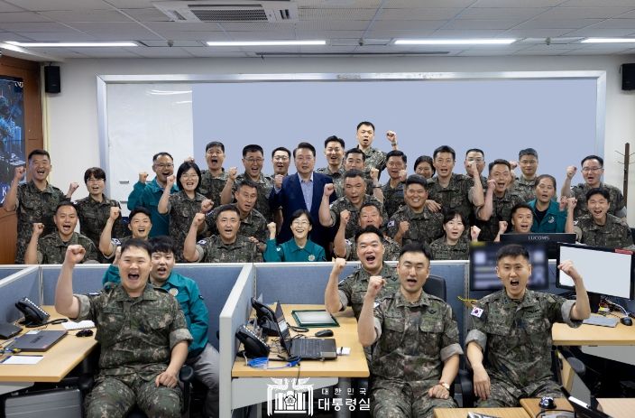 이어 대통령은 “우리 군을 전적으로 신뢰하며, 국군통수권자로서 장병들이 임무에 전념할 수 있도록 여건을 보장하는 데 최선을 다할 것”이라고 강조했다. 대통령은 참석한 모든 장병들과 일일이 악수하며 “대한민국을 우리가 지킨다”는 힘찬 구호와 함께 기념사진을 찍었다.