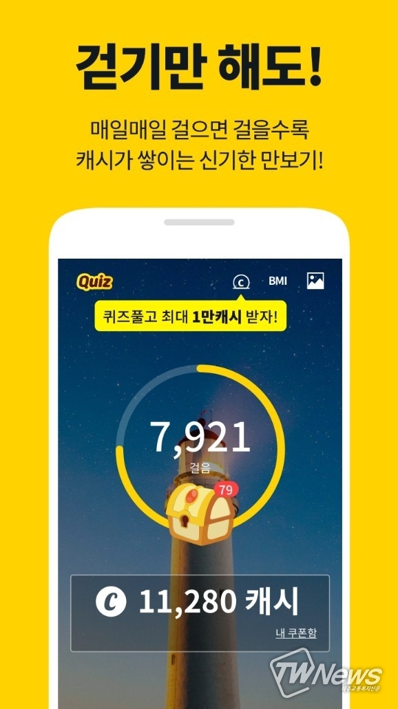 한편 캐시워크 앱(App)은 스마트폰을 켤때마다 만보기를 통해 소비 칼로리, 움직인 거리와 시간까지 계산해주는 똑똑한 만보기형 첫화면 어플이다.