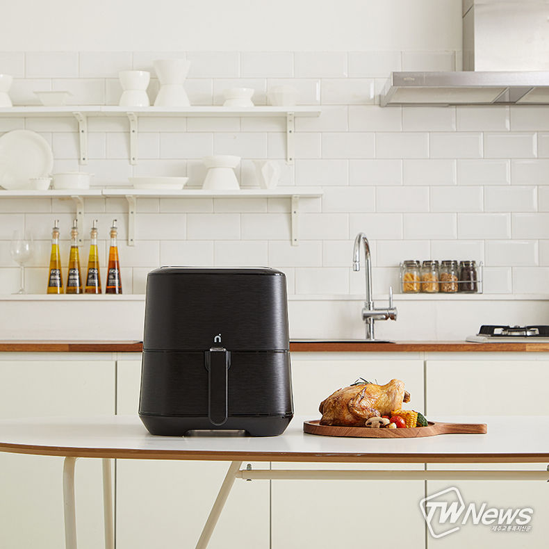 또한 이번 신제품의 경우 스테인리스 5중 파워 열선을 사용했다. 5중 파워 열선의 경우, 단시간에 최대 200도까지 오르는 초고온 열풍 순환 방식으로 고온의 공기를 순환시켜 기름 없이 겉은 바삭하고 속은 촉촉하게 익는 비결이 더해졌다.