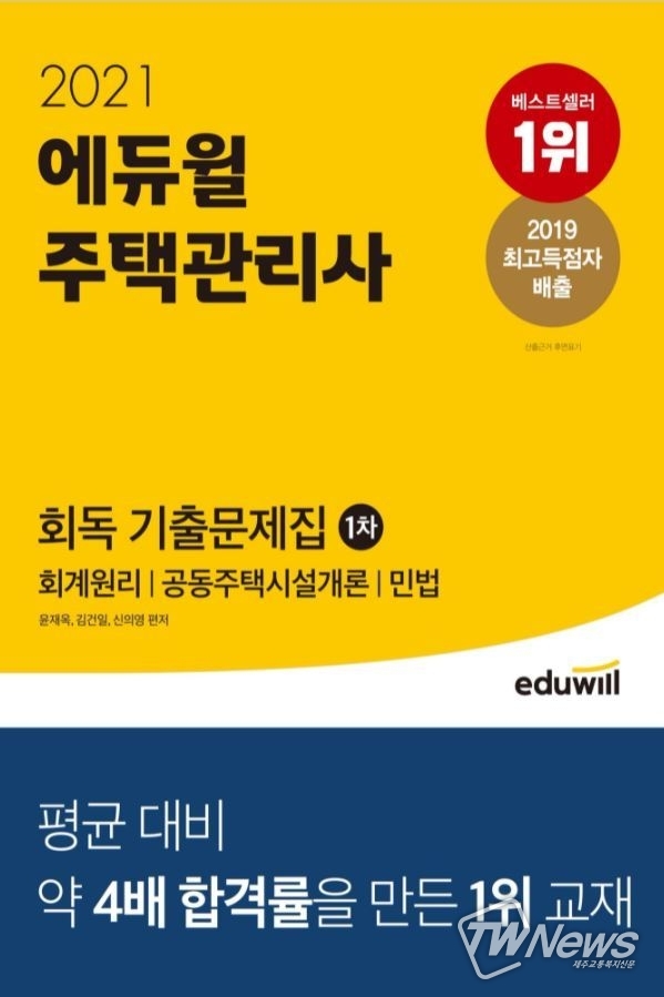 [제주교통복지신문 김지홍 기자] 온라인서점 YES24에서 집계한 6월 4주 주택관리사 부문 베스트셀러 순위 1위에 종합교육기업 에듀윌(대표 박명규) 주택관리사가 제작한 교재가 선정됐다. 이번에 1위에 선정된 교재는 ‘2021 에듀윌 주택관리사 1차 회독 기출문제집’이다.