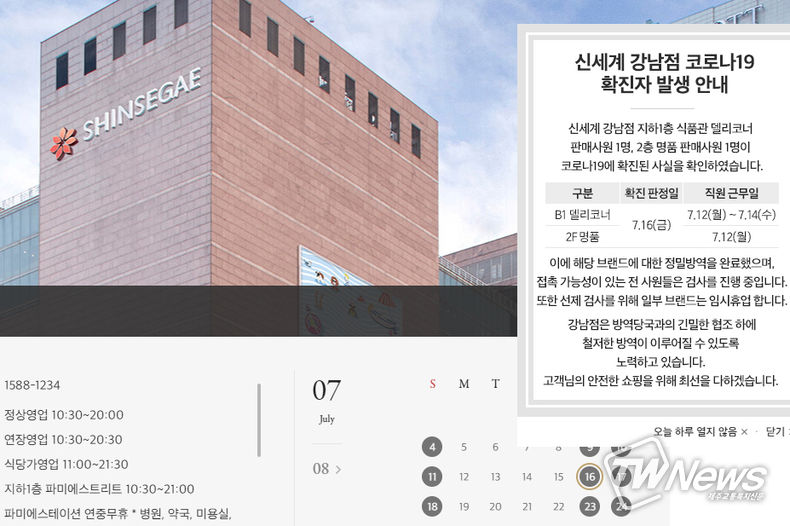 [제주교통복지신문 최효열 기자] 신세계백화점 강남점이 지하1층 식품관 델리코너 판매사원 1명과 명품 판매사원 1명이 16일 코로나19 확진판정을 받았다.