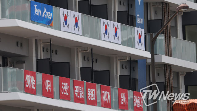 대한체육회 관계자들은 도쿄올림픽 선수촌 한국팀 거주동에 '신에게는 아직 5천만 국민들의 응원과 지지가 남아 있사옵니다'라고 적힌 현수막을 태극기와 함께 걸었는데 이를 문제 삼으려는 기류가 엿보인다.