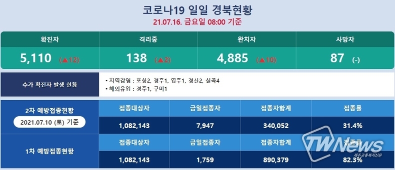 [제주교통복지신문 최효열 기자] 경상북도에서 코로나 확진자 16명이 발생했다.