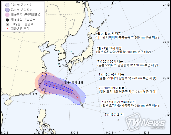 19일 09시 일본 오키나와 남동쪽 약 420km부근 해상(태풍)