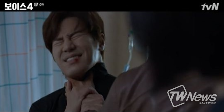 17일 오후 방송된 tvN 금토드라마 '보이스 시즌4'에서는 데릭 조(송승헌), 강권주(이하나)가 응급실에 실려온 동방민(이규형)에 분노하는 장면이 전파를 탔다.