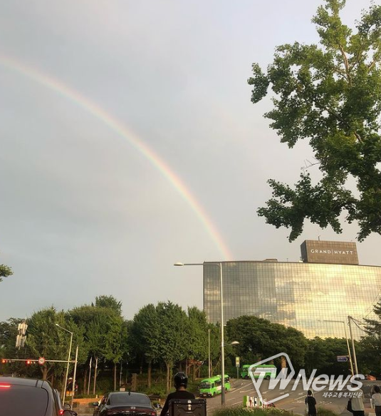 사진 속에는 무지개가 뜬 모습이 담겨있다.