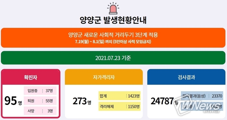 [제주교통복지신문 최효열 기자] 양양군이 코로나 확진자 동선을 공개했다.