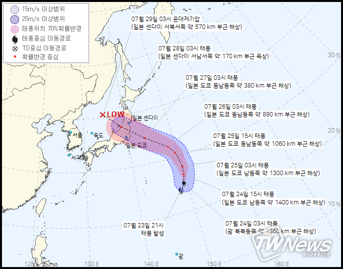 25일 03시 일본 도쿄 남동쪽 약 1300km부근해상