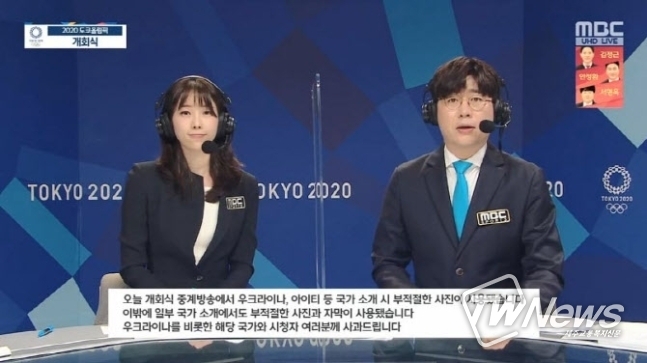 MBC는 개막식 중계 방송을 마치며 “오늘 개회식 중계방송에서 우크라이나, 아이티 등 국가 소개 시 부적절한 사진이 사용됐다. 이 밖에 일부 국가 소개에서도 부적절한 사진과 자막이 사용됐다”며 “우크라이나를 비롯한 해당 국가의 시청자 여러분께 사과드린다”고 밝혔다.