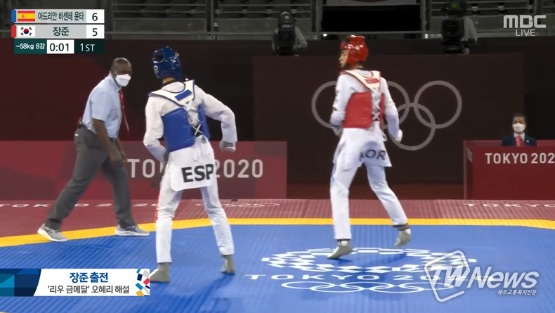 [제주교통복지신문 최효열 기자] [속보]태권도 장준 선수, 8강서 스페인 선수 꺾고 준결승 진출