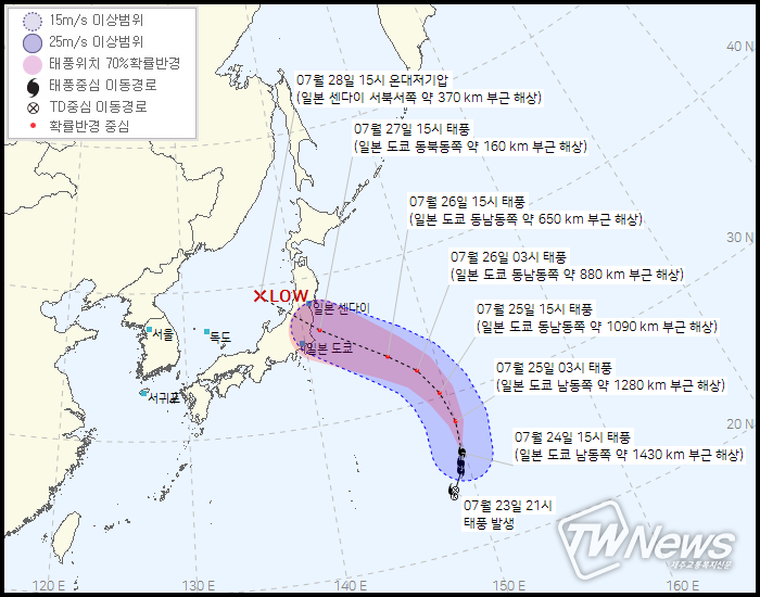 25일 15시 일본 도쿄 동남동쪽 약 1090km부근해상