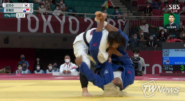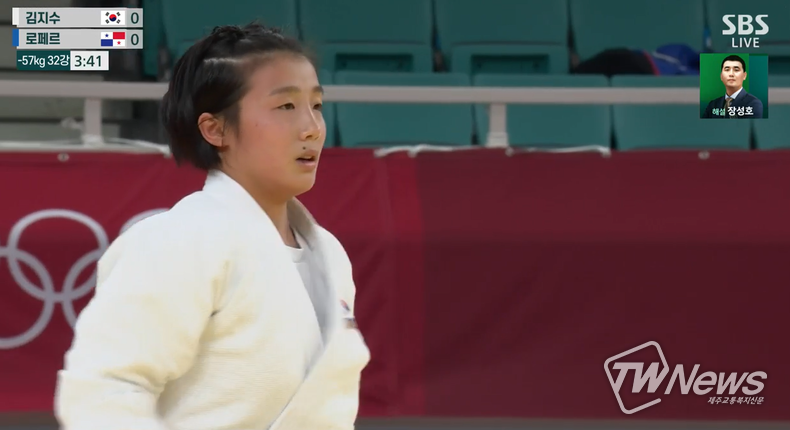 26일 김지수는 파나마 로페르 선수와 유도 57kg급 32강서 대결을 펼쳤다.