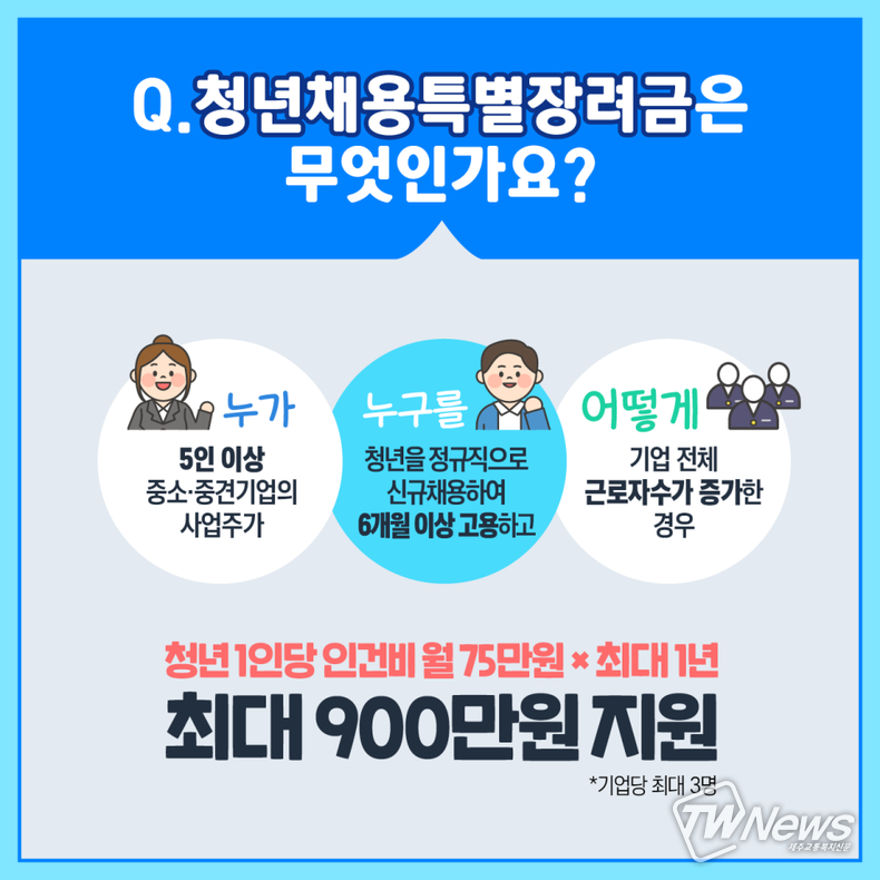 [제주교통복지신문 최효열 기자] 고용노동부(장관 안경덕)가 청년채용특별장려금 지원 사업을 시행한다.