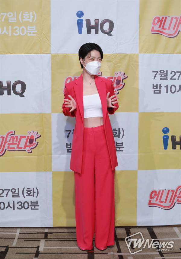 [제주교통복지신문 최효열 기자] '언니가 쏜다' 온라인 제작발표회에서 안영미가 핑크빛 슈트를 입고 환한 표정을 지으며 첫방송의 자신감을 드러냈다.