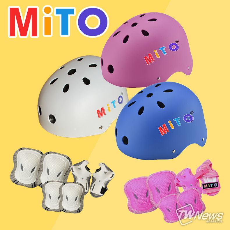 글로벌 브랜드 미토킥보드의 ‘미토 어린이 헬멧’은 두꺼운 완충소재인 강화플라스틱 ABS를 사용하여 갑작스러운 안전사고로부터 아이의 머리를 보호해준다.